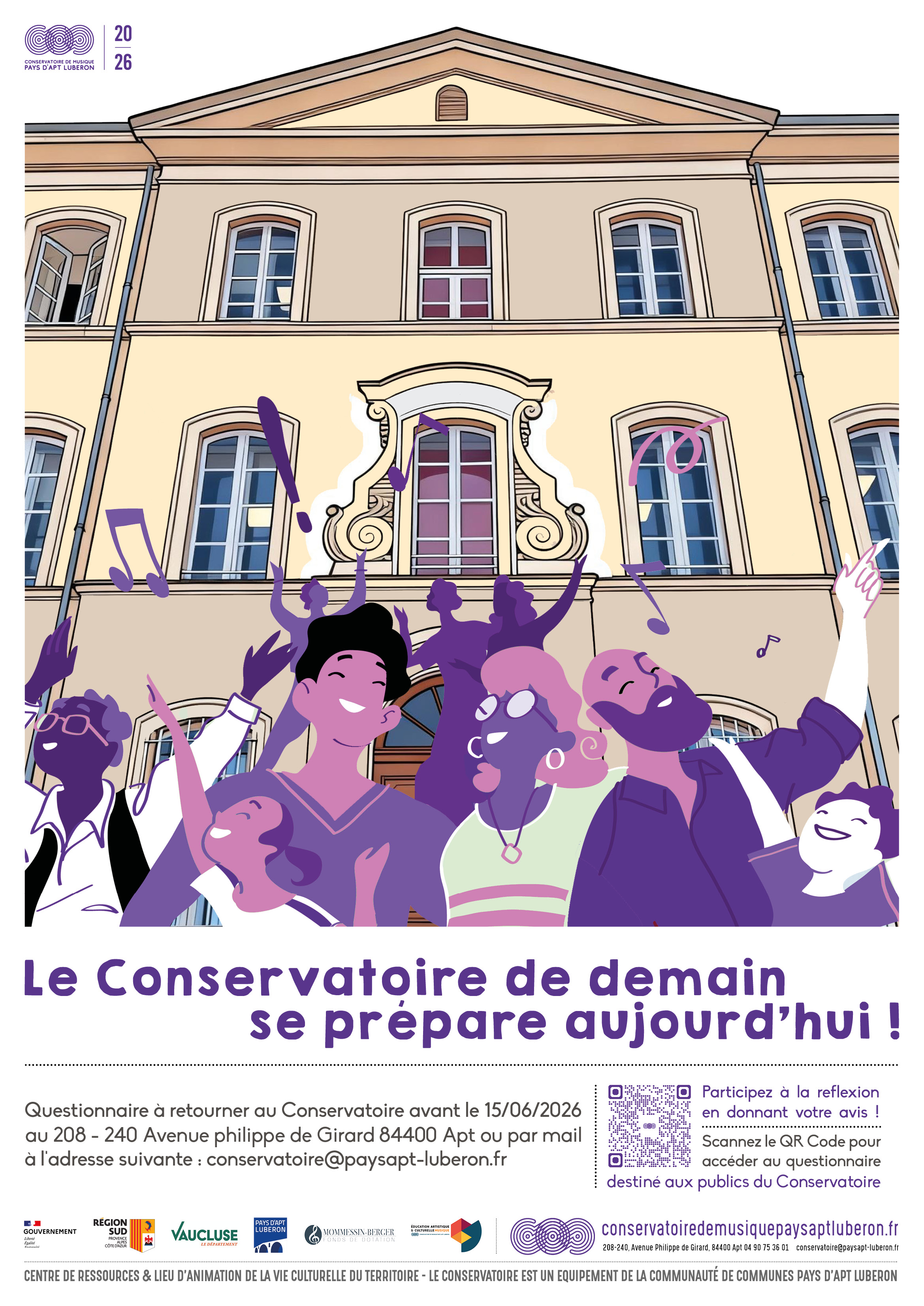 L’actuel projet d’établissement du Conservatoire de Musique Pays d’Apt Luberon arrive à son terme en février 2027.